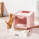 Foldable Cat Litter Box Front Entry & Top Exit Toilet Boxes with Massager Litter Scoop Enclosed Foldable Kitty Toilet